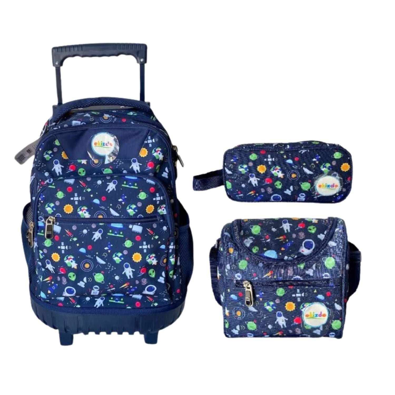 - ¿Es lavable el Pack 3 Piezas Mochila Escolar Espacial Lonchera Estuche? Sí, las piezas pueden limpiarse con un paño húmedo y jabón suave. Se recomienda evitar sumergirlas en agua.