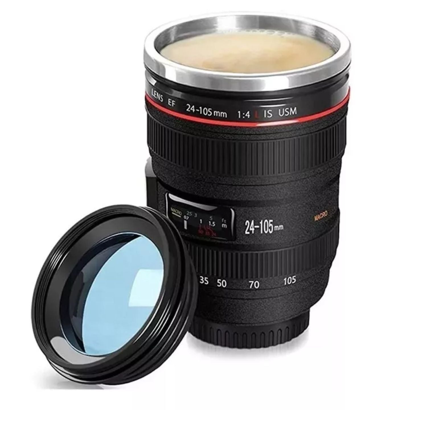 Vaso Café Cámara Negro 14cm con Tapa Diseño Moderno