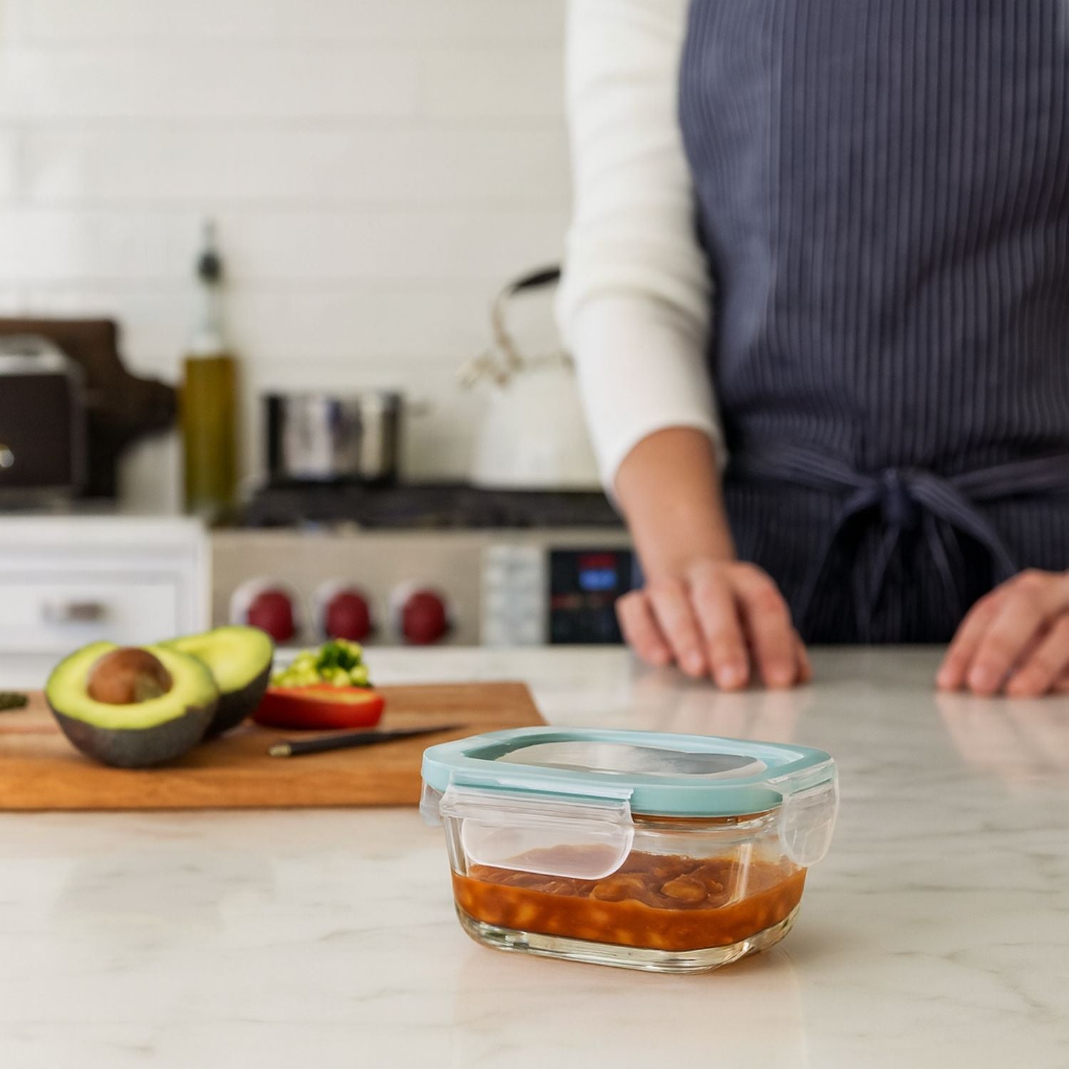 Este contenedor Allegra de 150mL es ideal para guardar pequeñas porciones de alimentos, desde aderezos y salsas hasta porciones individuales de frutos secos o postres. Gracias a su tamaño compacto, puede utilizarse para llevar snacks en la lonchera o para organizar ingredientes en la cocina. Su tapa hermética lo hace perfecto para conservar alimentos frescos, líquidos o sólidos sin riesgo de derrames. Además, su material de vidrio permite calentar directamente en el microondas (sin tapa) y lavar fácilmente en lavavajillas.