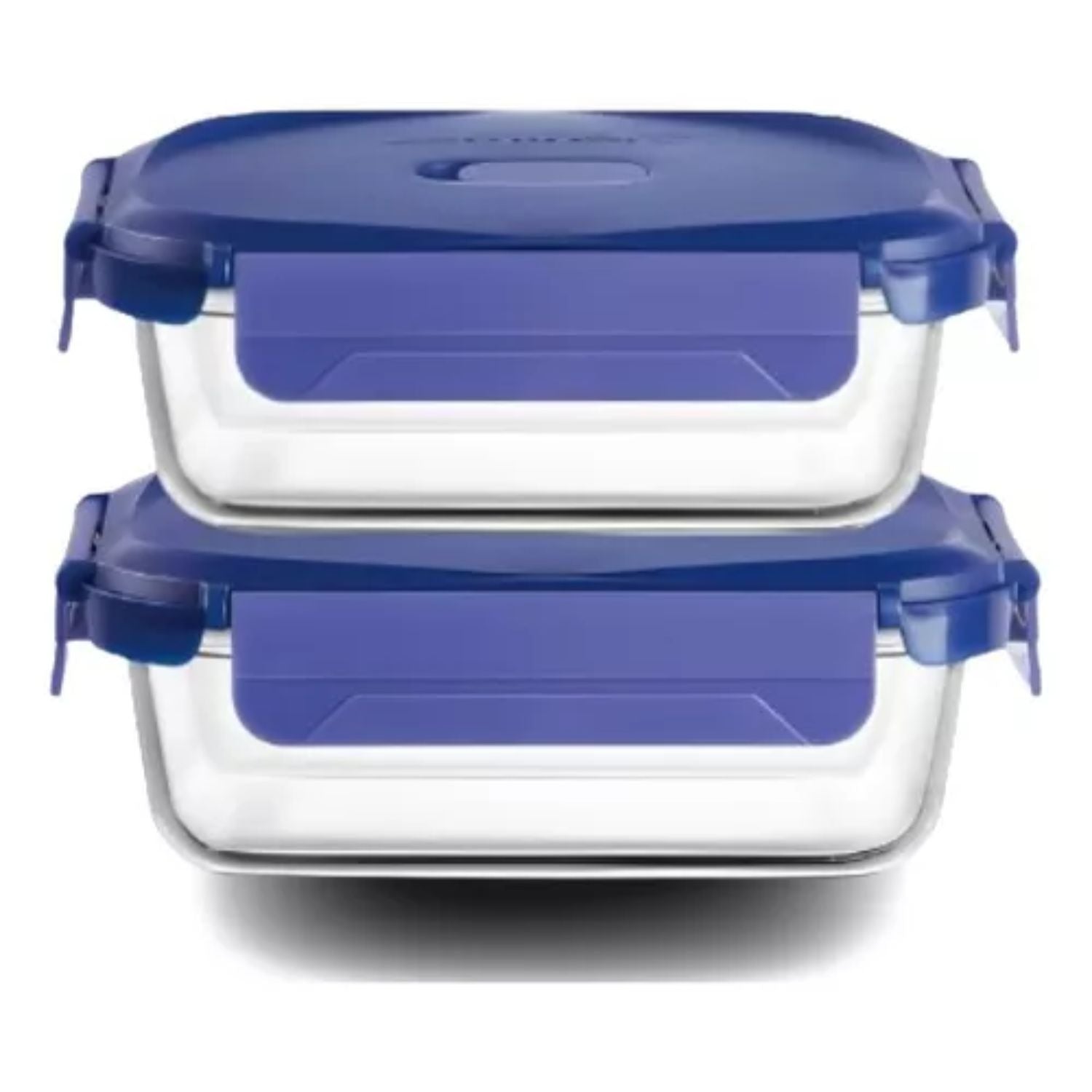 Pack 2 Contenedores de Vidrio Hermético Rectangular 1520mL