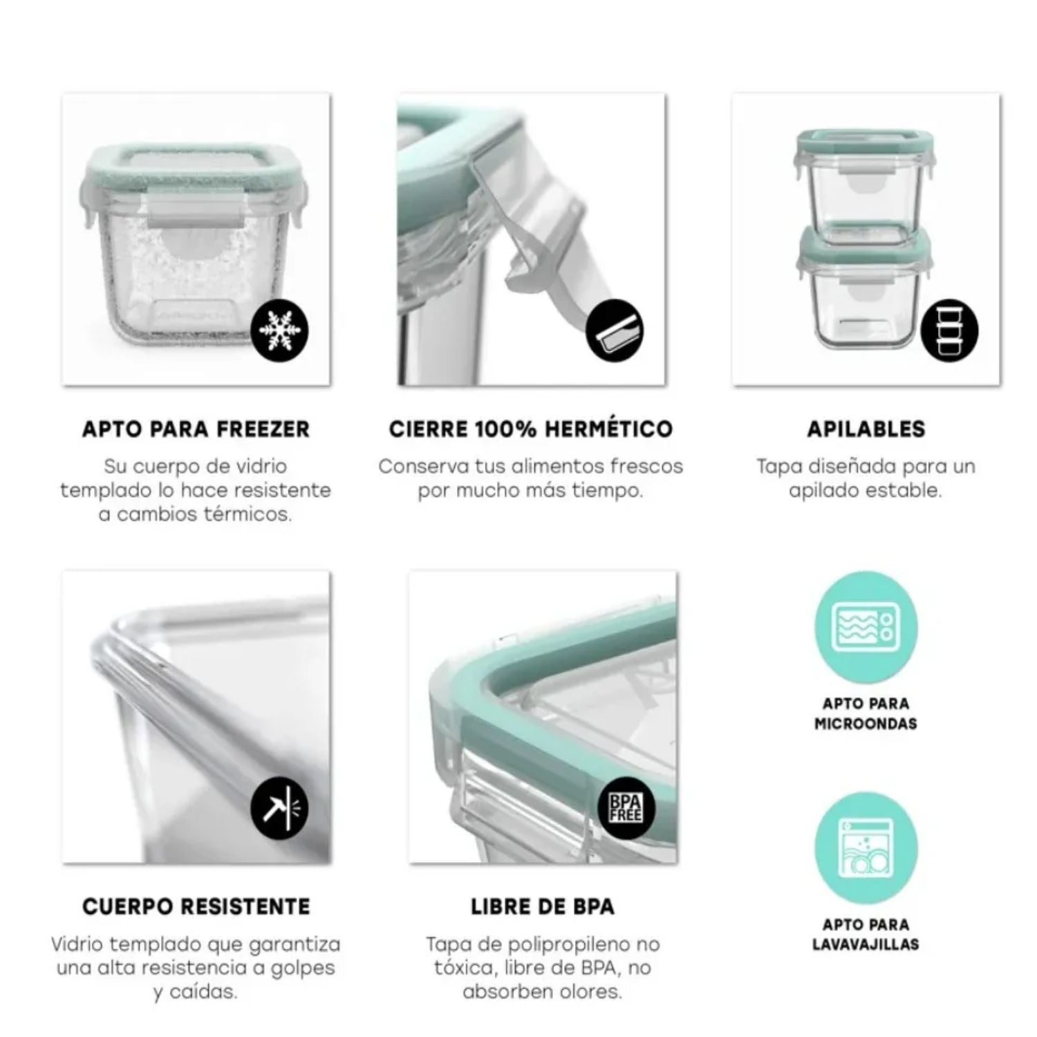 Set 10 Contenedores Hermético Allegra Vidrio 210mL