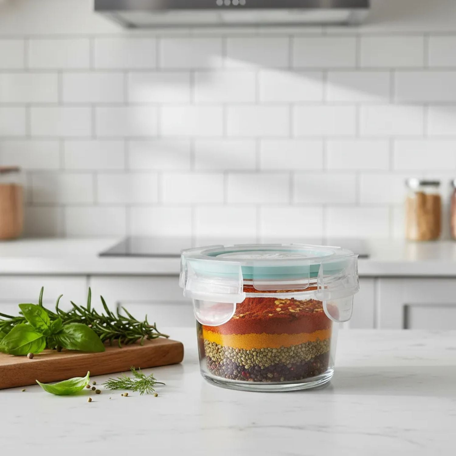 Cada contenedor del Set Allegra está fabricado en vidrio grueso de alta resistencia, ofreciendo durabilidad y seguridad alimentaria. Las tapas sellan herméticamente para evitar fugas y preservar el sabor natural de los alimentos. Su material no retiene olores ni colores, garantizando una higiene superior. Su estructura robusta resiste el uso diario y los cambios de temperatura. Además, el diseño transparente y redondo aporta un estilo moderno y limpio a cualquier cocina, combinando estética con practicidad.
