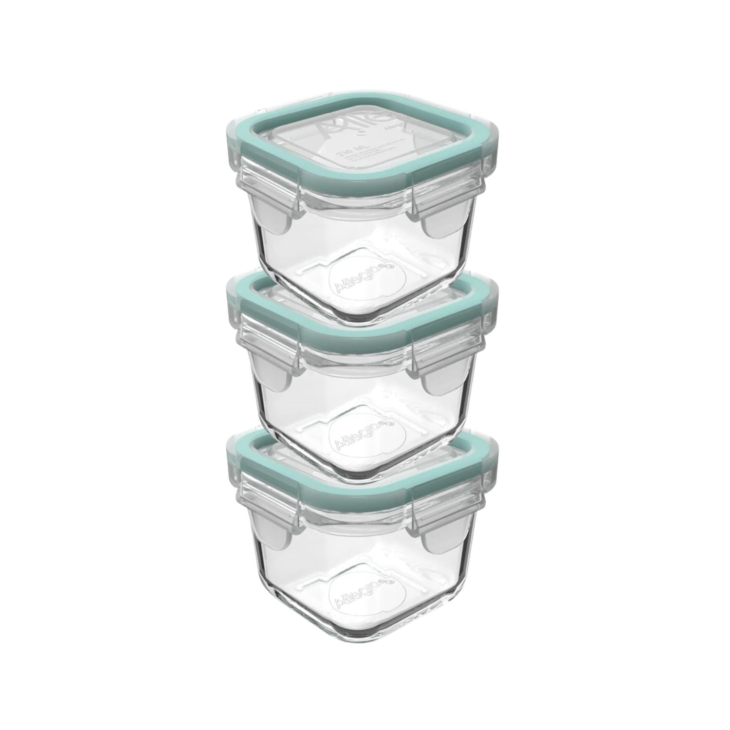 Set 3 Contenedores Hermeticos Allegra Vidrio 210mL Cuadrado