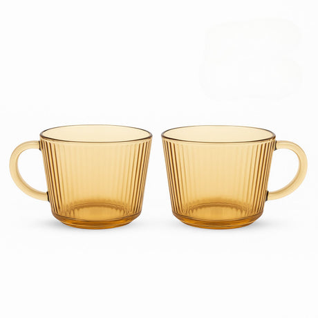 Set 2 Tazas Vidrio Ámbar 380mL Diseño Acanalado Café Té