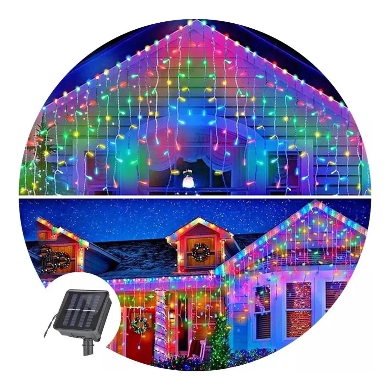 Luces Navidad Solar Cascada 144 Led 3M RGB Decoracion Hogar