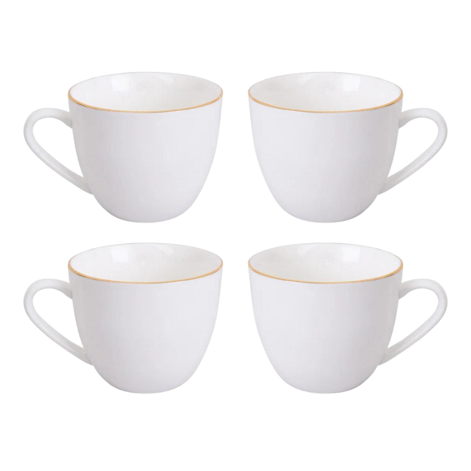 Elegante Set de 4 Tazas de Té 260mL con Borde Dorado