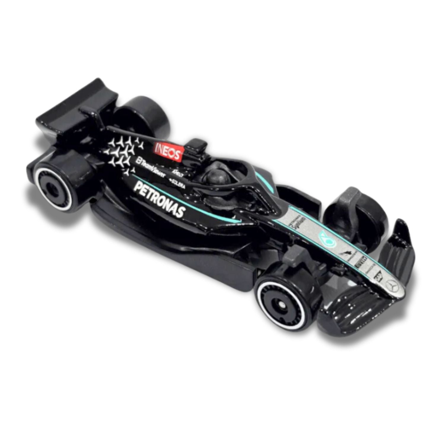 El Auto Hot Wheels Mercedes AMG Petronas Formula One Team, número 5 de la colección TREASURE HUNT, es una pieza emblemática que rinde homenaje al legado de Hot Wheels en el mundo del automovilismo. Este modelo destaca por su diseño aerodinámico y su carrocería estilizada, inspirada en los autos de Fórmula 1 más avanzados. Con proporciones precisas y un realismo excepcional en los moldes, este auto captura la esencia de velocidad y competencia. La colección TREASURE HUNT es conocida por ofrecer modelos únicos y limitados, donde cada auto cuenta una historia. Otros destacados de esta colección incluyen el Lamborghini Veneno y el Ford Mustang GT.