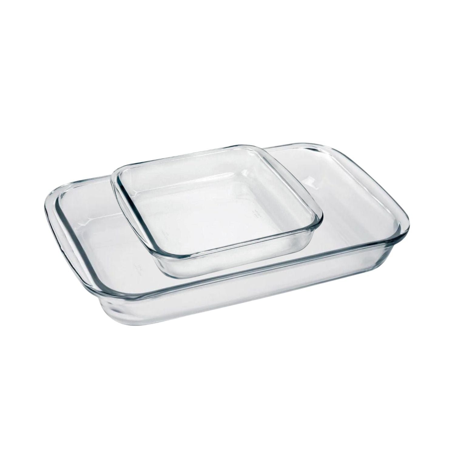 Set de 2 Asaderas de Vidrio Templado: Cuadrada y Rectangular
