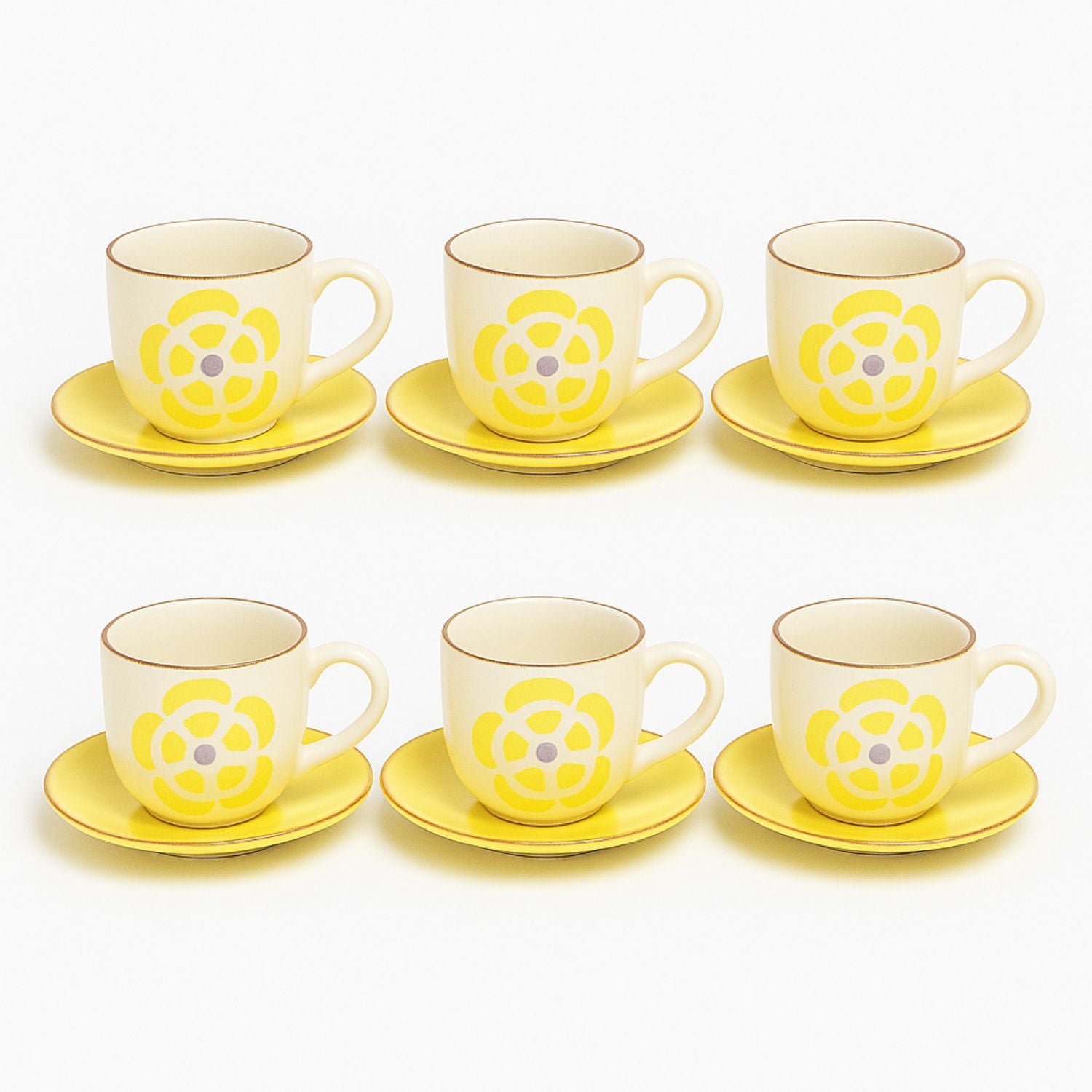 Set 6 Tazas Porcelana 350mL Platillo Flor Amarilla