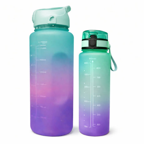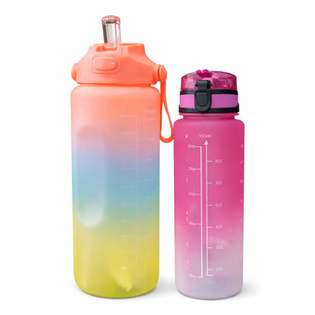 Set de Botellas Deportivas Plásticas con Bombilla 2000 mL y 900 mL Degradado