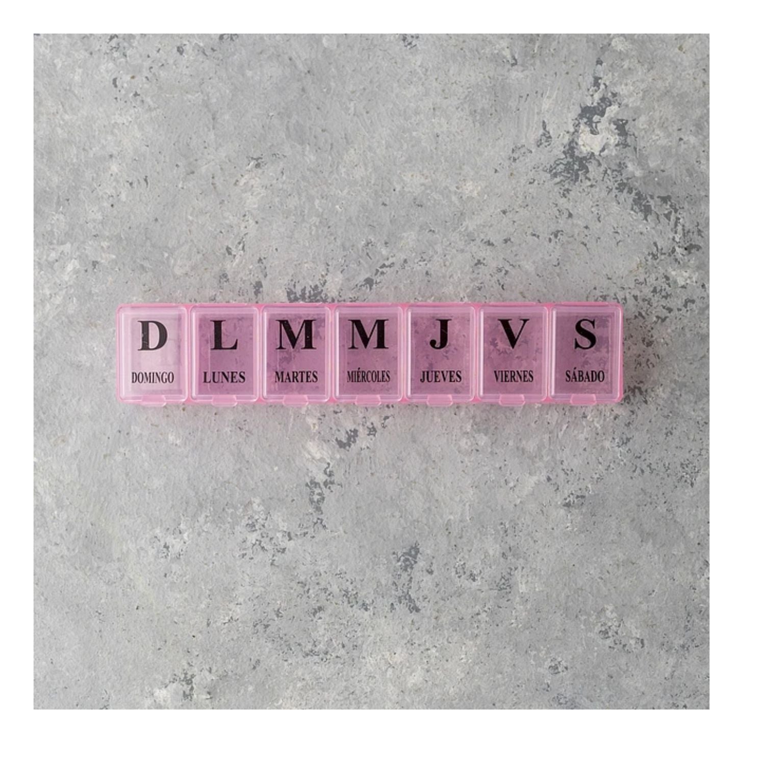 Pastillero Semanal Rosado 15cm Organizador de Medicamentos