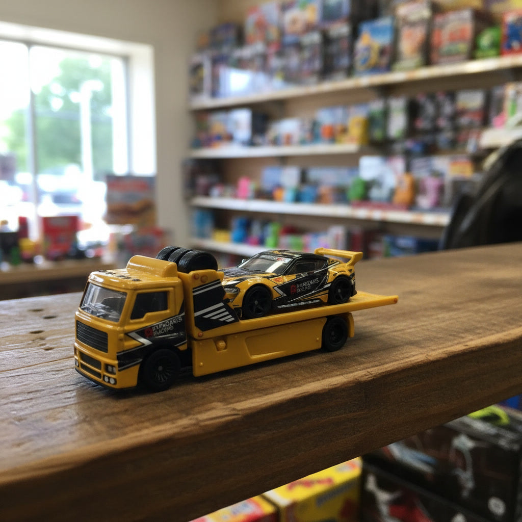 - Incluye camión transportador y Toyota GR Supra Papadakis Racing