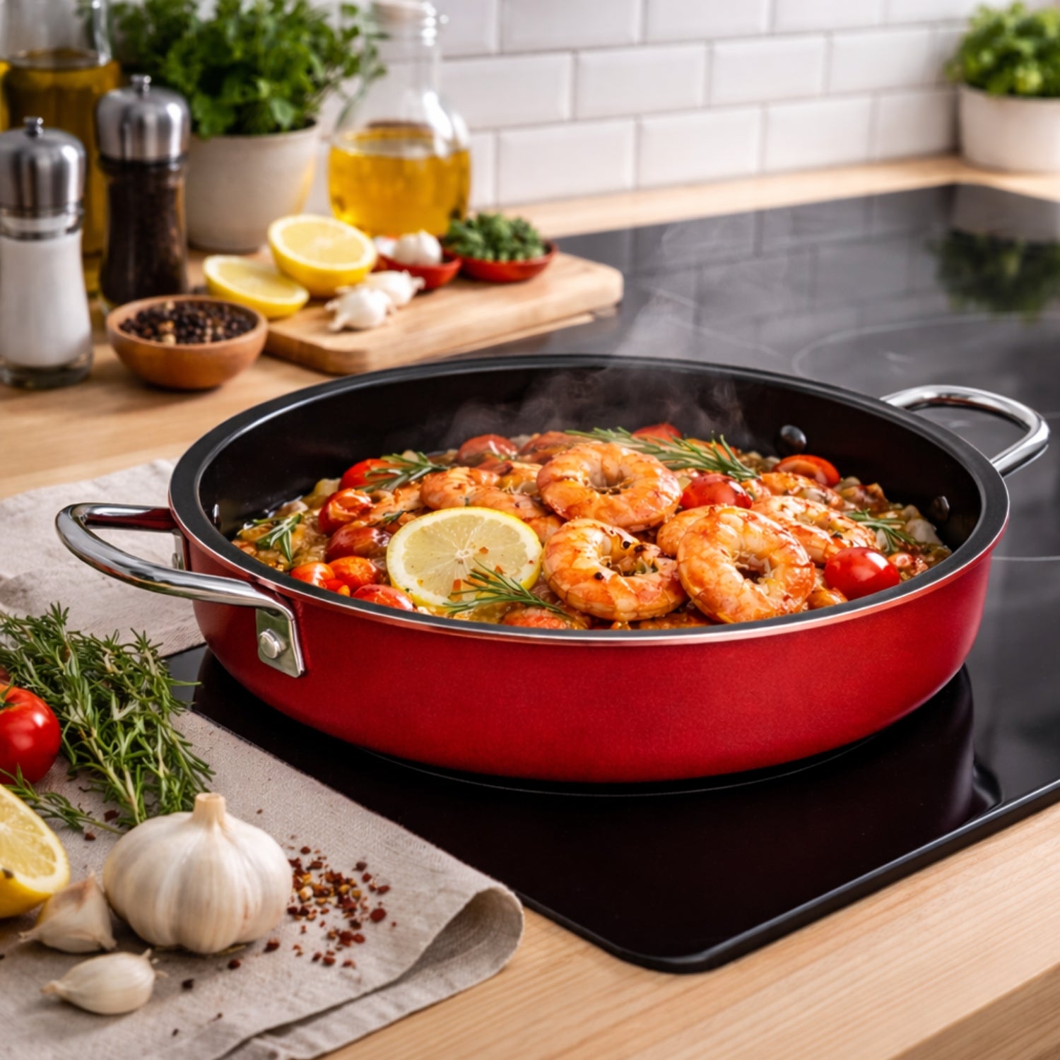 Su cuerpo de aluminio Roja favorece una distribución de calor más pareja, logrando mejores resultados en menos tiempo. Además, sus asas metálicas entregan firmeza y estabilidad al manipularla, moverla o servir directo a la mesa.