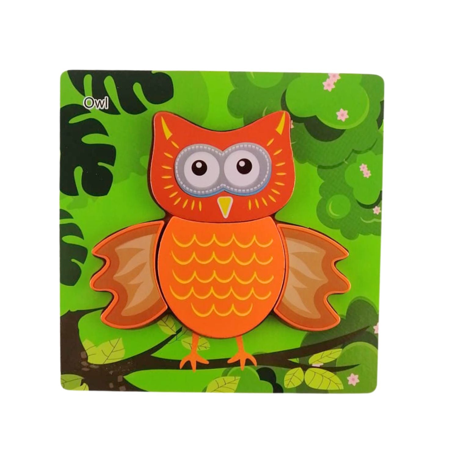 El Puzzle de Madera de Animales 15x15cm Para Niños de +3 es un juguete educativo ideal para el aprendizaje temprano. Está fabricado en madera y presenta un diseño colorido de búho con piezas grandes y fáciles de manipular, favoreciendo la coordinación mano-ojo y la motricidad fina.