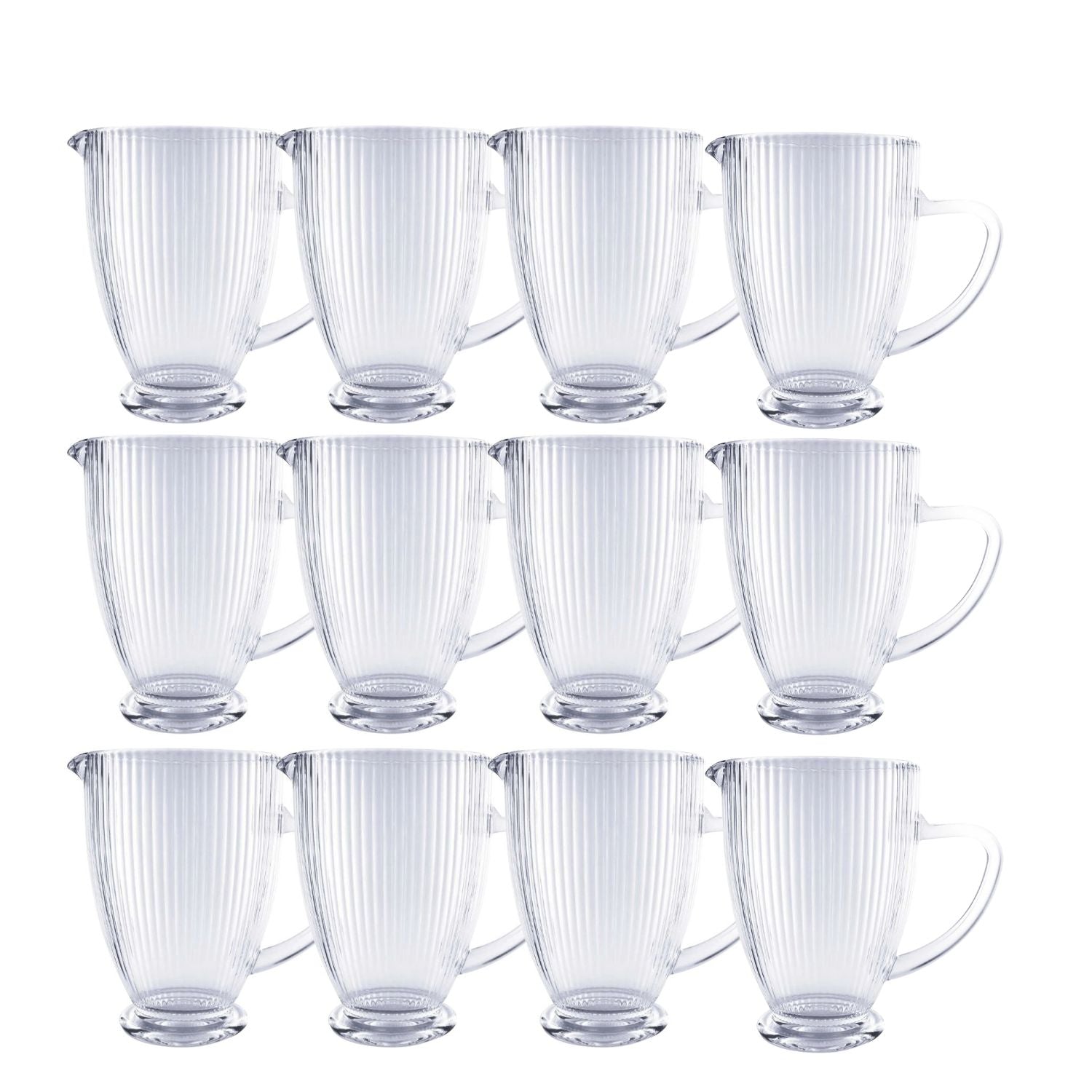 Este set de 12 jarras talladas de 1350mL es ideal para servir tus bebidas favoritas con estilo. Fabricadas en vidrio transparente, cada jarra presenta un diseño elegante y sofisticado que realza cualquier mesa. Su acabado liso y tallado proporciona un toque distintivo, mientras que su capacidad generosa las hace perfectas para reuniones familiares o eventos especiales. La claridad del vidrio permite apreciar el color y la textura de las bebidas, haciendo que cada servicio sea una experiencia visual atractiva.