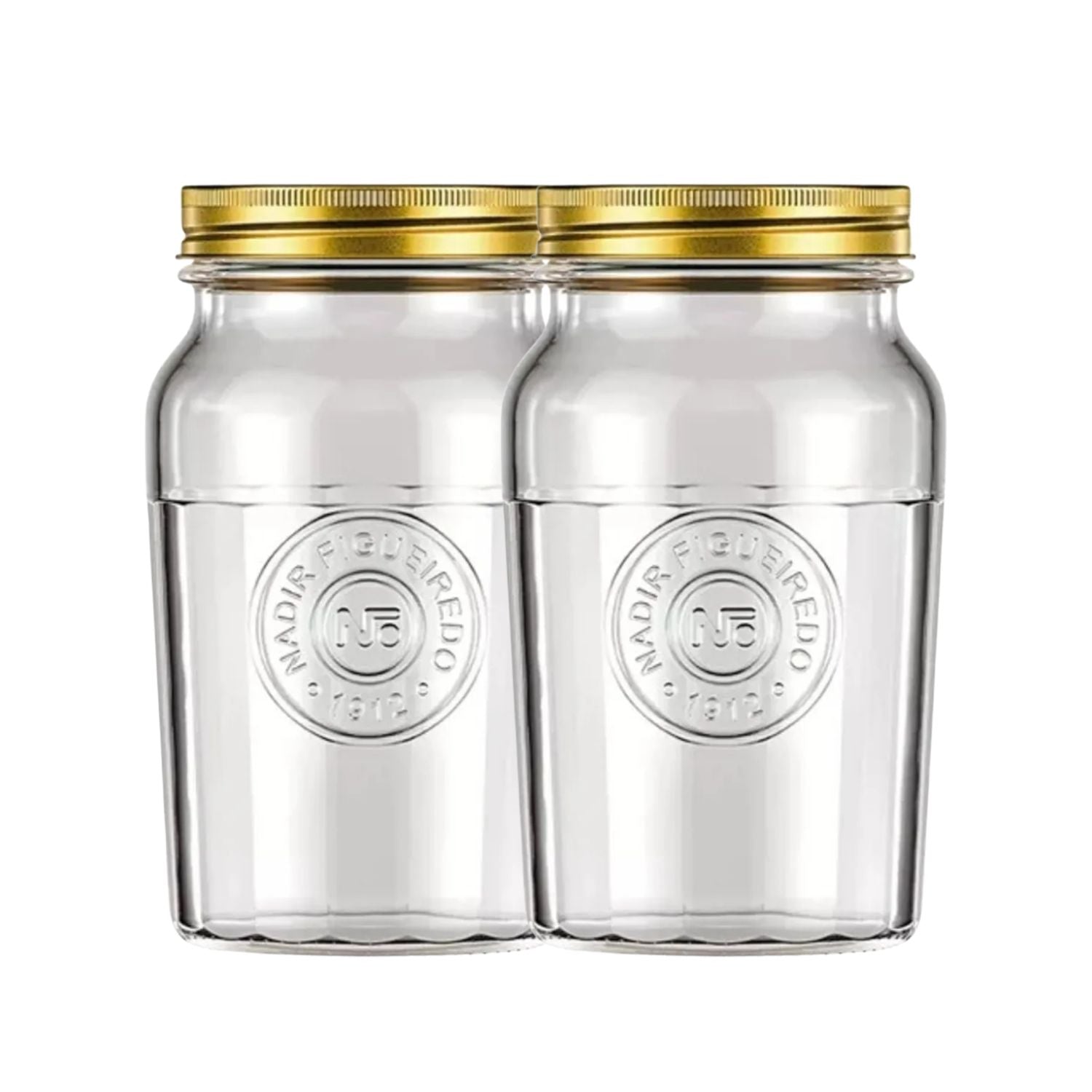 Set 2 Frascos Americanos Vintage Vidrio 1000ml Tapa Dorada