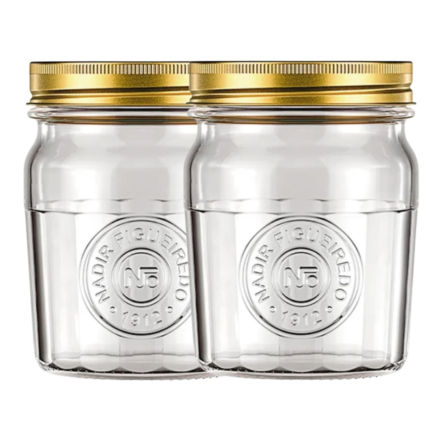 Set 2 Frascos Americano Vintage Vidrio 500ml Tapa Dorada