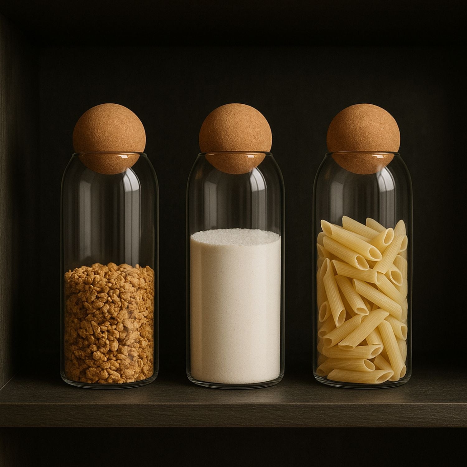 Descubre nuestro exclusivo Set de 3 Botellas Frascos Contenedor de Vidrio, cada uno con una capacidad de 1200mL. Estas botellas son perfectas para almacenar y conservar tus alimentos, especias o líquidos. Fabricadas en vidrio transparente de alta calidad, permiten ver el contenido fácilmente, lo que añade un toque elegante a tu cocina. El diseño incluye un tapón de corcho que no solo sella herméticamente, sino que también aporta un estilo rústico y natural. Ideal para quienes buscan funcionalidad sin sacrificar la estética.