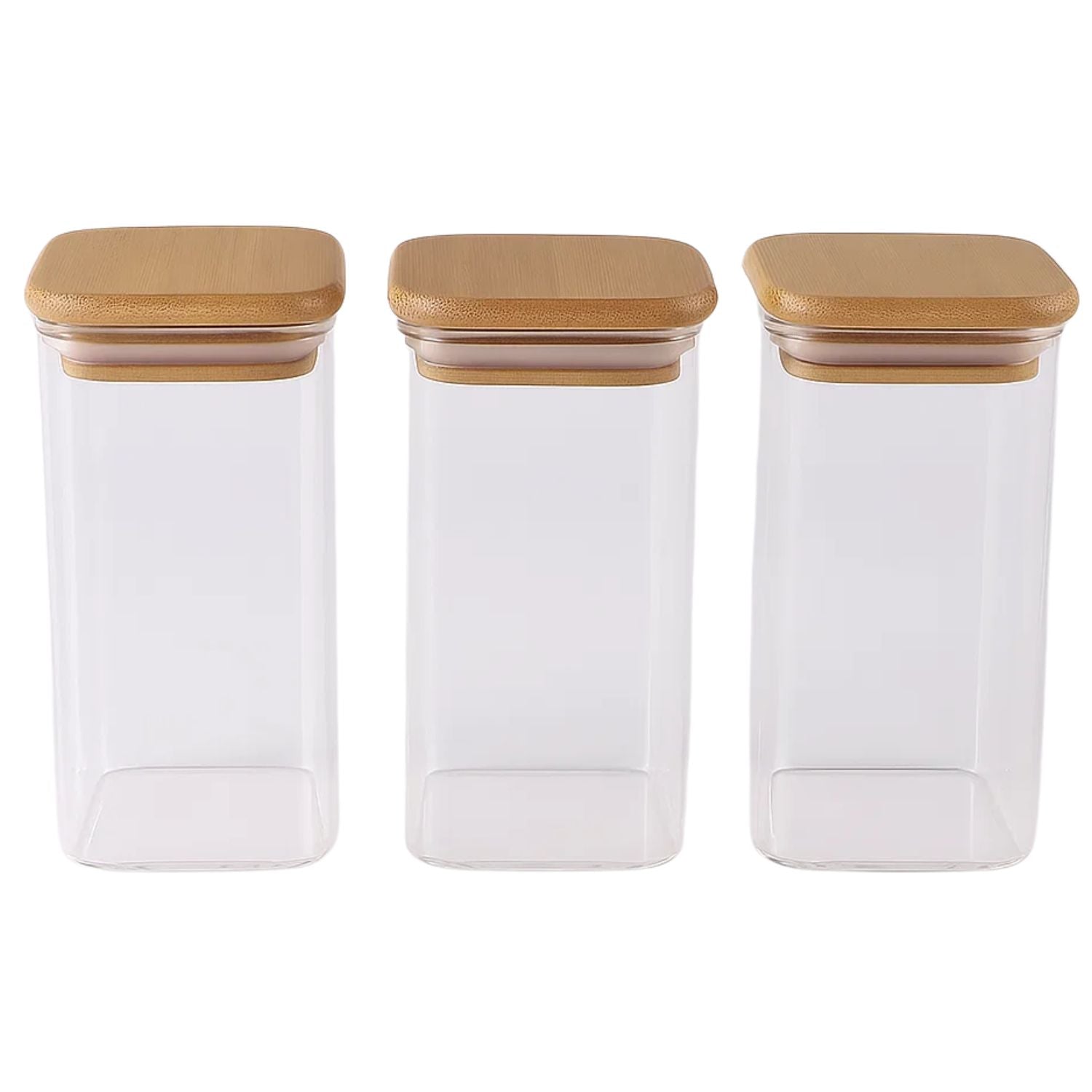 Set 3 Frascos Hermeticos Cuadrado 1100mL Vidrio 12cm Tapa Bambú